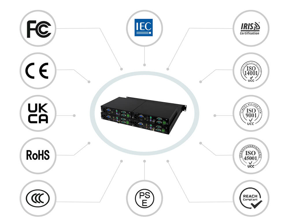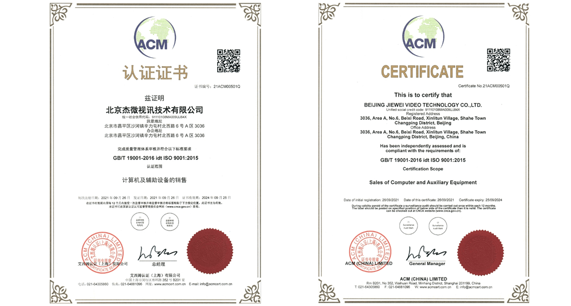 此外,其他杰微产品(如VGA延长器、DVI延长器等)也通过了ISO 9001、IRIS、3C、CE、FCC、ROHS、IC、UKCA、PSE等国际权威认证标准指定的认证 对产品质量和安全提出了严格要求。